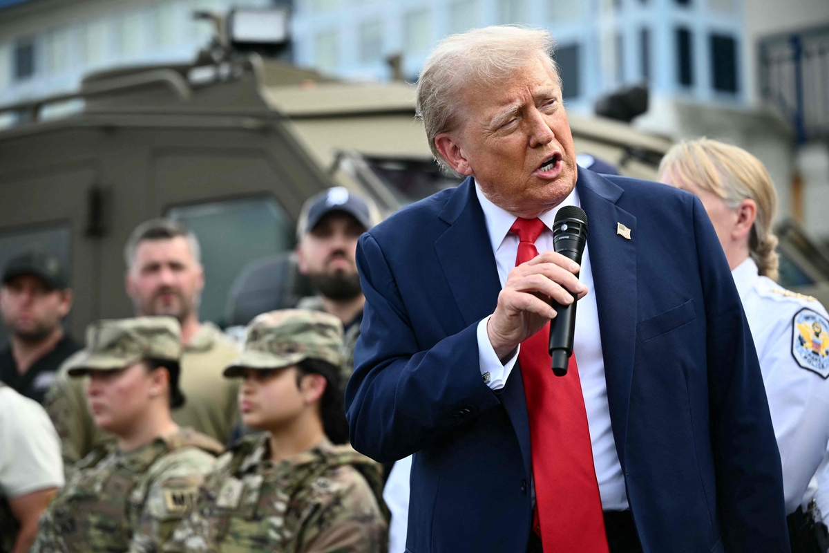 21일(현지시간) 워싱턴DC 미 연방공원경찰 아나코스티아 작전기지를 방문한 도널드 트럼프 미국 대통령이 발언하고 있다. AFP연합뉴스 |