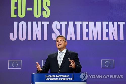 (서울=연합뉴스) 서혜림 기자 = 미국과 유럽연합(EU)이 21일(현지시간) 공동성명을 통해 무역합의 내용을 문서로 확정하면서 이번 합의에 따른 각국의 손익에도 관심이 쏠린다.