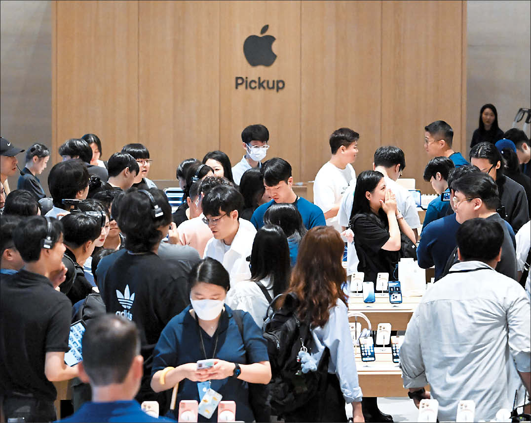 애플 아이폰16 시리즈가 국내 공식 출시된 지난해 9월 20일 오전 서울 중구 명동 애플스토어에서 고객들이 아이폰16을 살펴보고 있다. 임세준 기자 |
