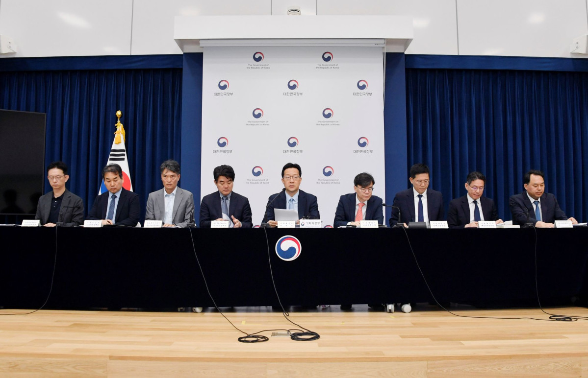 윤인대 기획재정부 차관보(가운데)가 19일 정부세종청사에서 진행된 '새정부 경제성장전략' 상세 브리핑에서 모두발언을 하고 있다. |