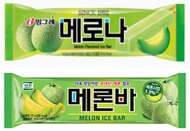 빙그레는 구체적으로 ▲양쪽 끝은 짙은 초록색이지만 가운데는 옅은 점, ▲좌우에 멜론 사진을 배치한 점, ▲네모반듯한 글씨체 등이 비슷하다는 것을 문제 삼았다.
