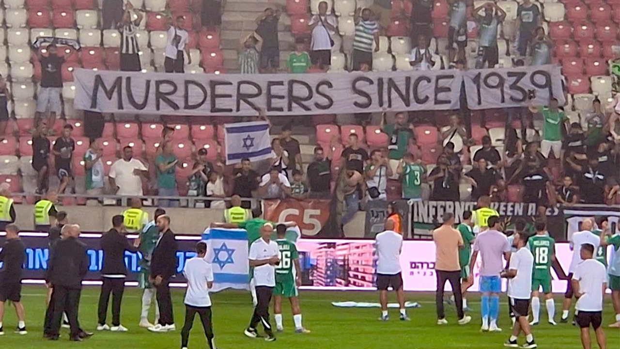 이스라엘 팀 서포터들은 1주일 뒤 열린 2차전에서 이스라엘 국기와 함께 영어로 '1939년부터 살인자들'이라고 쓴 현수막을 내걸었습니다.