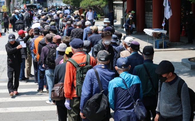 (서울=뉴스1) 박세연 기자 = 12일 서울 종로구 탑골공원 무료급식소에서 어르신들이 줄을 서서 기다리고 있다. 국민연금공단에 따르면 가파른 고령화에 '100세 이상' 국민연금 수급자가 201명을 기록해 처음으로 200명을 돌파했다. 최고령자는 111세다. 2025.5.12/뉴스1 Copyright (C) 뉴스1. All rights reserved. 무단 전재 및 재배포, AI학습 이용 금지. /사진=(서울=뉴스1) 박세연 기자 |