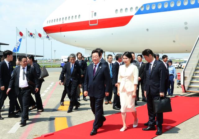 대통령실에 따르면 이 대통령과 부인 김혜경 여사는 수행원, 수행 기자단 등과 함께 대통령 전용기인 공군 1호기를 타고 이날 오전 11시쯤 하네다국제공항에 도착했다.