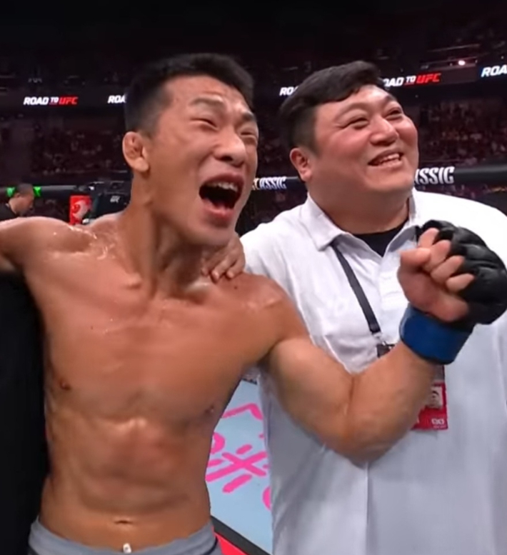 김상욱(13승 3패)은 22일(한국시간) 중국 상하이 체육관에서 열린 'ROAD TO UFC 시즌4: 준결승' 라이트급(70.3kg)에서 런야웨이(27·중국)와 숨막히는 한판 승부를 벌였다. 그는 2라운드 3분 42초만에 리어네이키드 초크 서브미션승을 거뒀다. 리어네이키드 초크는 상대방의 뒤에서 목을 조르는 기술이다.