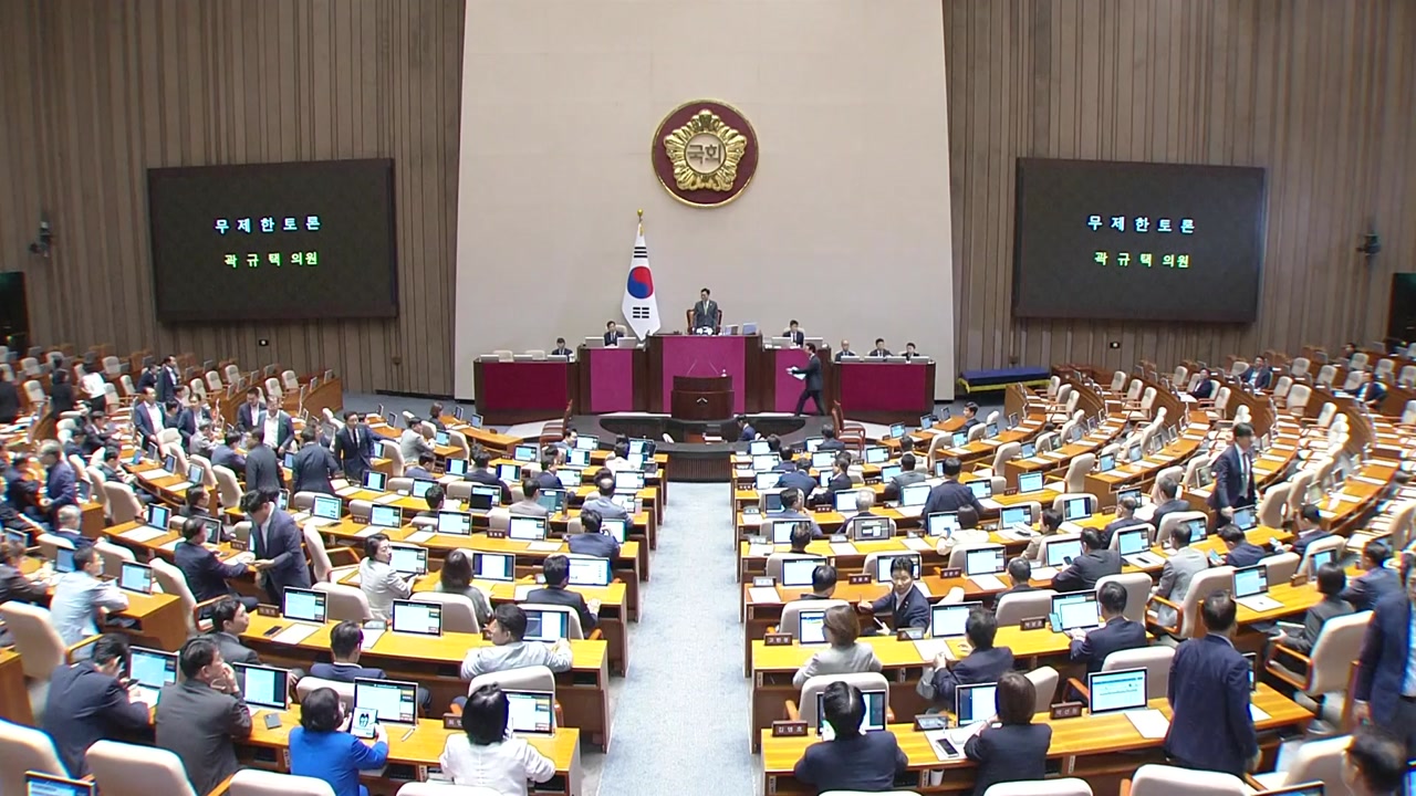 앞서 국민의힘은 '경제 내란법', '민주노총의 대선 청구서'라고 규정하며 필리버스터에 돌입했지만, 범여권은 조금 전인 오전 9시쯤 재적 의원 5분의 3 이상의 동의를 얻어 필리버스터를 종결시켰습니다.
