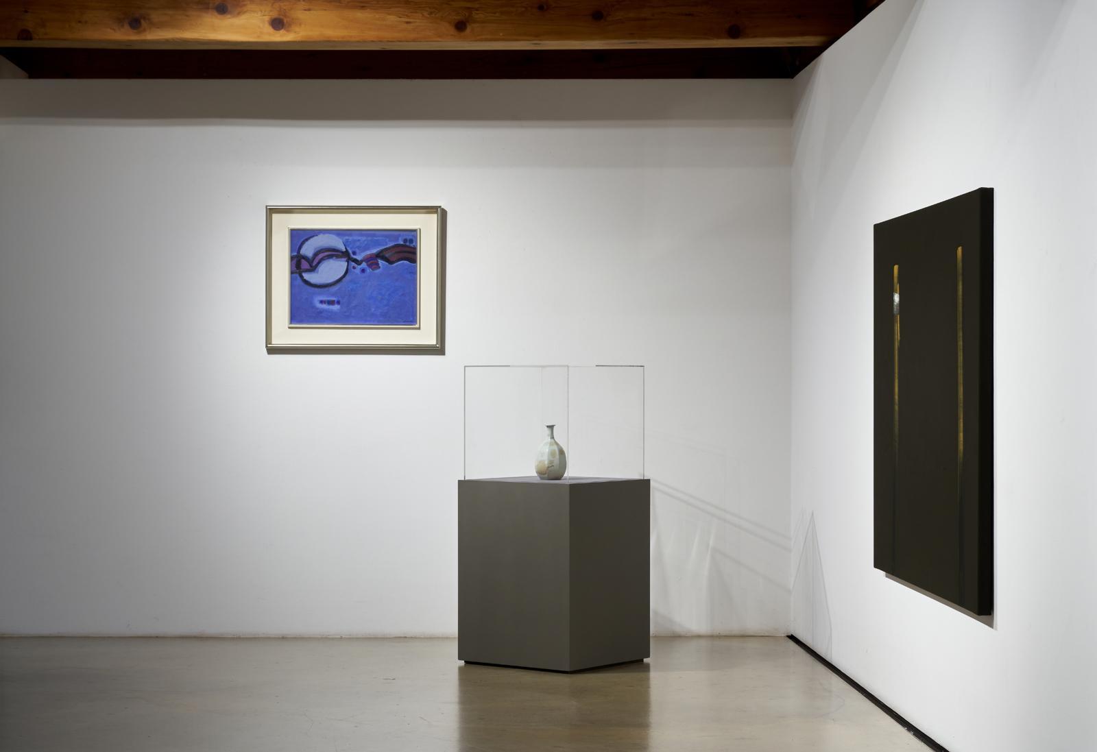 같은 전시장 맞은편에는 백자 술병인 ‘표형문자입주병’이 전시됐다. 이 병을 좌우로 김환기가 한글을 연상케 하는 문자를 그린 추상 ‘무제’(1960년대)와 작은 활자들을 모아서 제작한 이진용 작가의 ‘컨티뉴엄’ 연작이 벽면을 가득 채운다. 이렇게 전시는 흙으로 빚은 도자기에서 시작해 흙을 재료로 하거나 이것을 연상케 하는 회화, 설치 작품으로 확장된다.