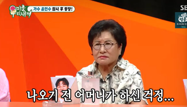24일 방송된 SBS 예능 ‘미운우리새끼(미우새)’에서는 새로운 미운오래새끼로 가수 윤민수의 모친 김경자가 출연해 눈길을 끌었다.