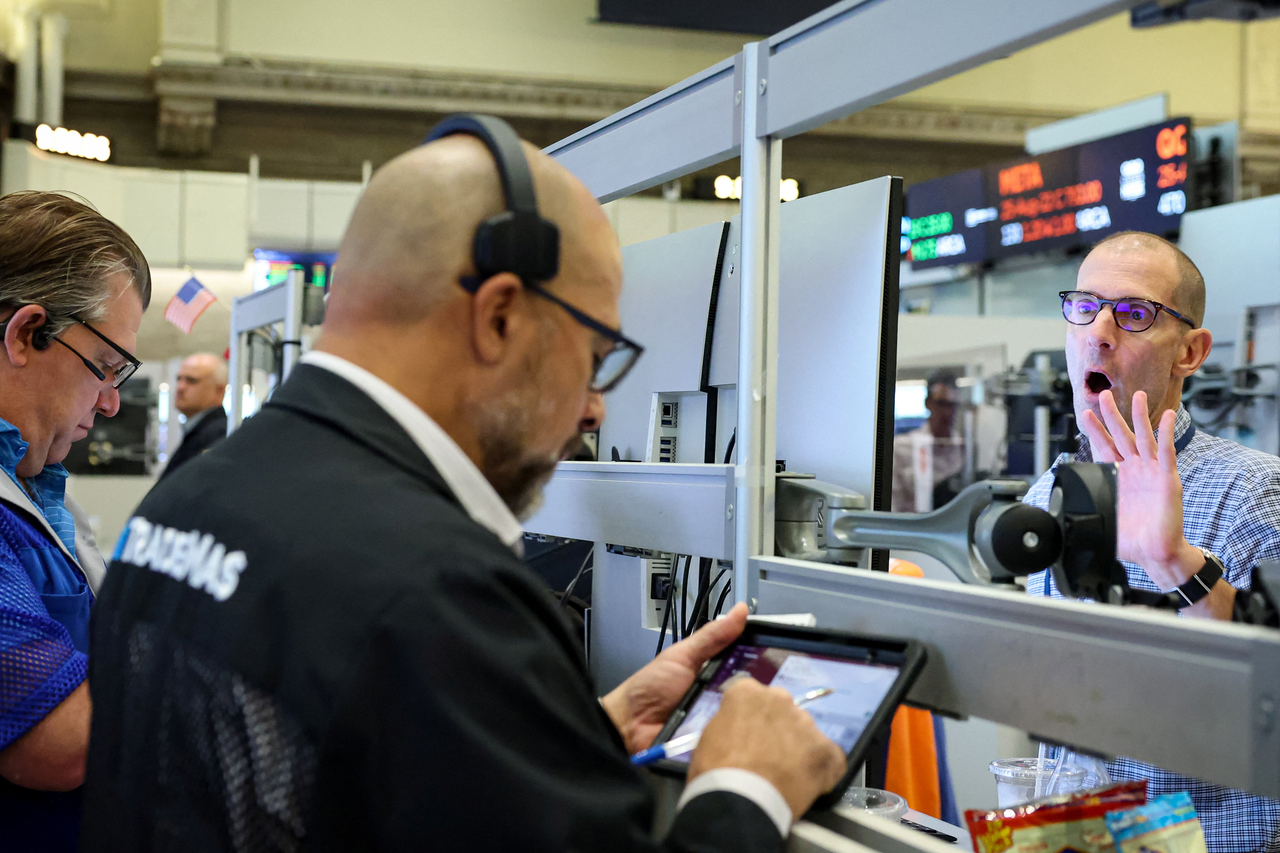 19일(현지시간) 미국 뉴욕증권거래소(NYSE)의 미국 증권거래소(AMEX)에서 선물 옵션 트레이더들이 일하고 있다. [로이터] |