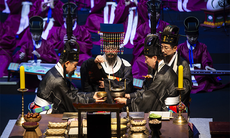 땅의 신, 곡식의 신에게 나라의 안녕과 풍요를 기원하던 ‘사직제례악’의 2024년 공연 모습. 국립국악원 제공 |