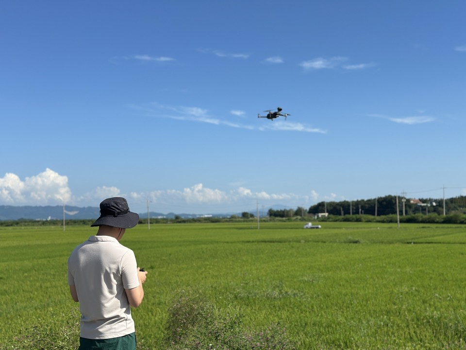 서산시 직원이 드론을 활용해 온열질환 인명피해가 예상되는 논, 밭 등을 점검하는 모습 |