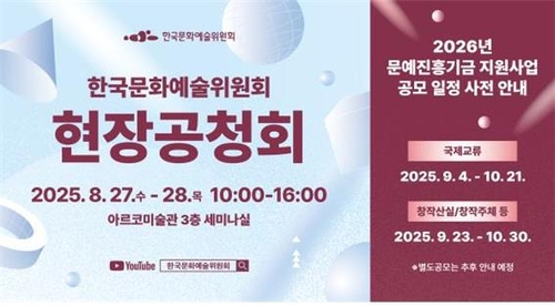 (서울=연합뉴스) 황재하 기자 = 한국문화예술위원회(ARKO)는 오는 27~28일 서울 종로구 아르코미술관에서 예술계 지원 방안을 마련하기 위한 현장 공청회를 개최한다고 25일 밝혔다.