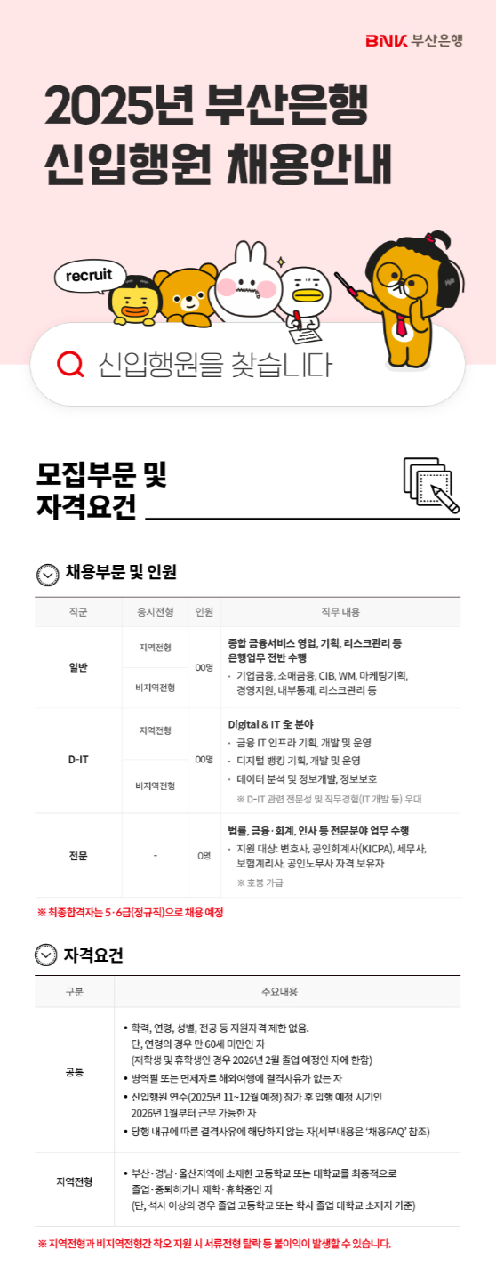 BNK금융그룹이 25일 부산은행과 경남은행의 지원서 접수를 시작으로 하반기 신입행원 공개채용에 나선다.