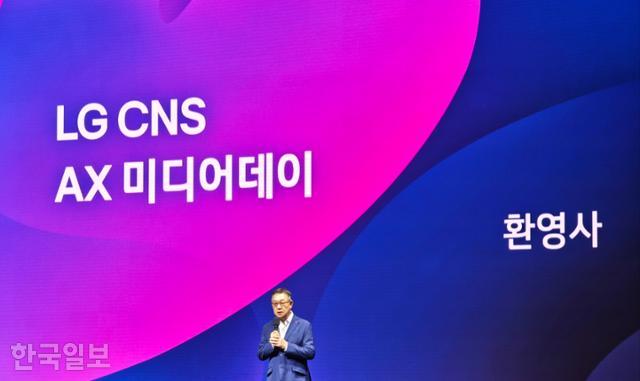 현신균 LG CNS 대표가 25일 서울 강서구 LG사이언스파크에서 열린 'AX 미디어데이'에서 환영사를 하고 있다. 김진욱 기자 |