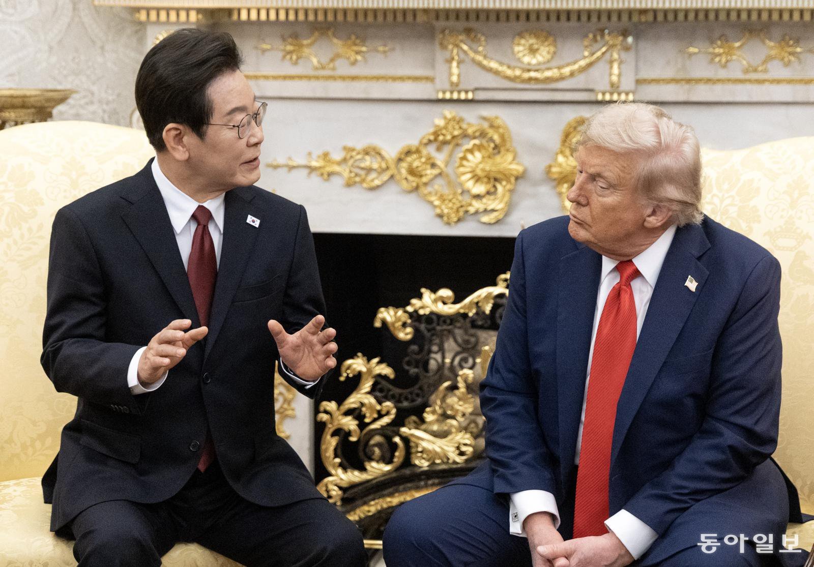 이재명 대통령과 도널드 트럼프 미국 대통령이 25일(현지시간) 미국 워싱턴DC 백악관에서 정상회담을 하고 있다. 2025.08.25. 워싱턴=송은석 기자 silverstone@donga.com |