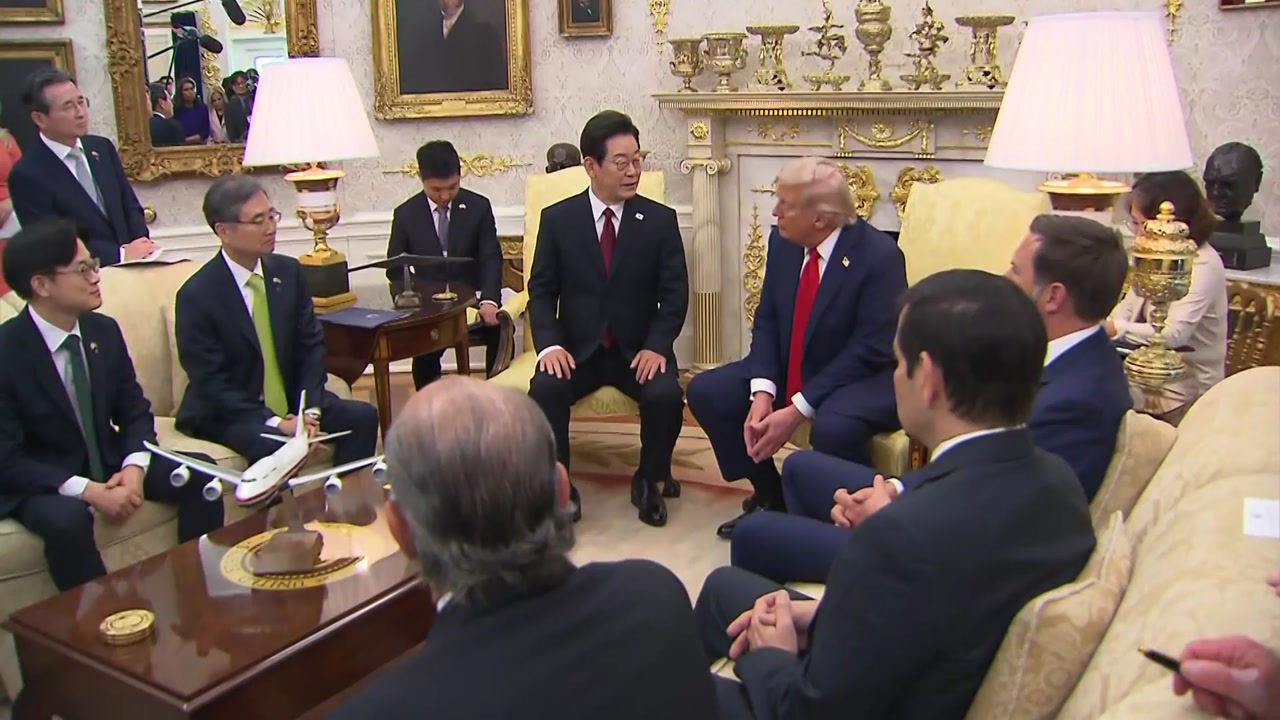 하지만 이재명 대통령은 백악관 집무실의 리모델링부터 다우지수까지 트럼프 대통령이 신경을 써온 세심한 주제부터 꺼냈습니다.