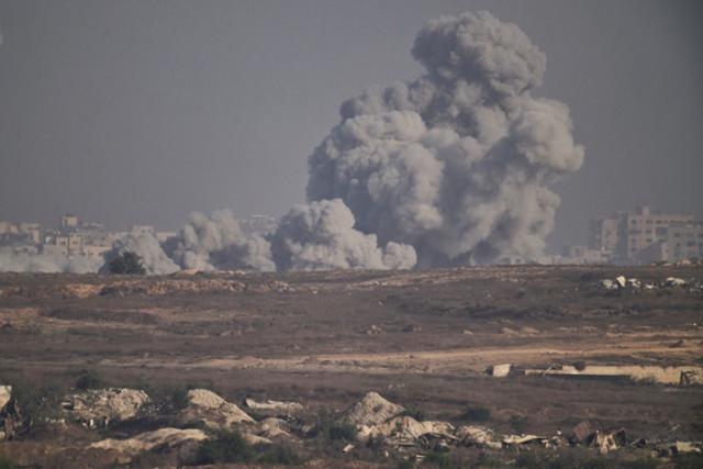 25일 팔레스타인 가자지구 북부에서 이스라엘의 공습으로 거대한 연기가 치솟고 있다. 가자지구=AP 뉴시스 |