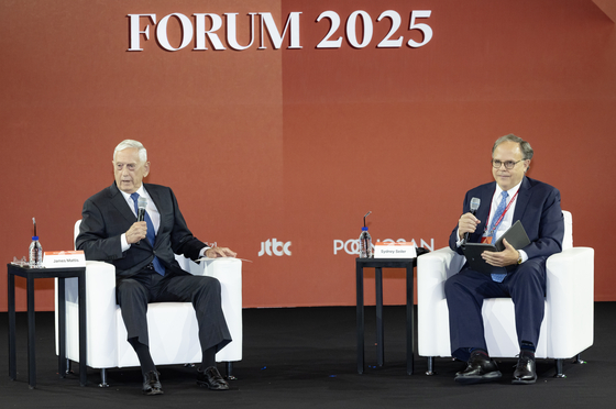 '중앙일보-CSIS 포럼 2025'가 26일 서울 중구 신라호텔 다이너스티홀에서 열렸다. 이날 제임스 매티스 전 미 국방부 장관(왼쪽)과 시드니 사일러 전 미 국가정보위원회 북한정보분석관이 기조대담을 하고 있다. 전민규 기자 / 20250826 |