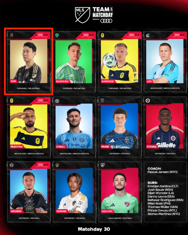 MLS 사무국은 26일(이하 한국시간) 공식 홈페이지를 통해 30라운드 이주의 팀을 발표했다. 여기에 손흥민이 이름을 올렸다.