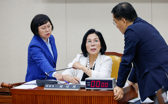 26일 서울 여의도 국회에서 열린 과학기술정보방송통신위원회 제428회국회(임시회) 제2차 전체회의에서 최민희 위원장과 더불어민주당 김현, 국민의힘 최형두 간사가 대화하고 있다. 뉴스1 |