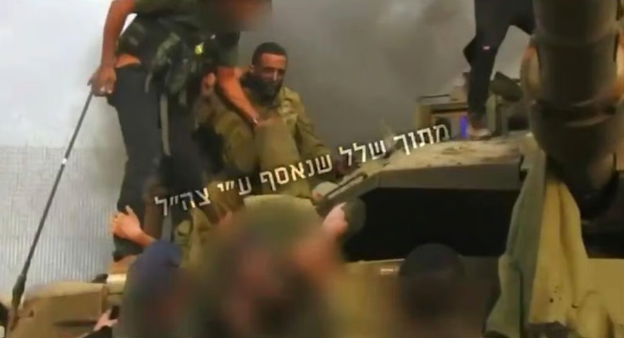 이스라엘 군인인 님로드 코헨이 하마스 손에 불타는 탱크에서 끌려나오는 영상 캡처(와이넷뉴스 갈무리) |
