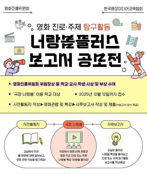 ‘너랑봄’ 프로그램은 전국 유·초·중·고등학생 등 청소년을 대상으로, 영화 관람 경험과 영화 분야 진로체험 특강 교육의 기회를 제공한다. 2023년 시범 사업을 거쳐 2024년부터 본격적으로 진행 중으로, 영화진흥위원회가 주관하고, (사)한국영상미디어교육협회(미디액트)가 운영한다.