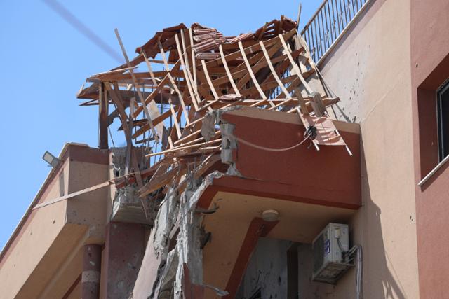26일 팔레스타인 가자지구 남부 칸 유니스에 있는 나세르 병원에서 라이브 영상을 녹화하던 중 이스라엘의 공격으로 로이터통신 카메라 기자 후삼 알 마스리가 사망한 현장의 풍경. 칸 유니스=로이터 연합뉴스 |