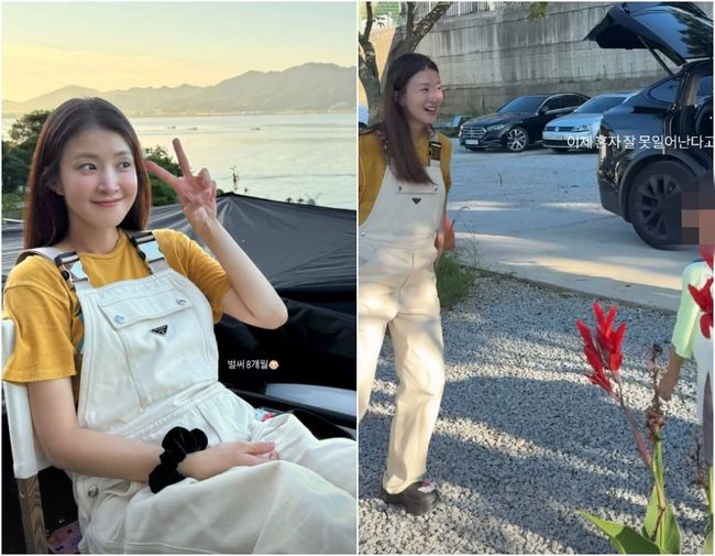 27일 이시영은 자신의 인스타그램에 “벌써 8개월”이라는 글과 함께 캠핑장에서 찍은 사진을 게재했다. 사진 속 이시영은 노란 티셔츠에 화이트 오버롤을 입고 환한 미소를 지으며 손가락으로 브이(V) 포즈를 취하고 있다. 불룩해진 배 위에 손을 얹은 모습에서 다가올 출산의 설렘이 전해진다.