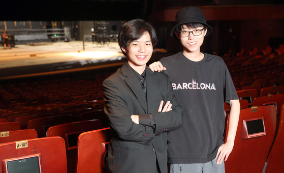 (왼쪽부터) 국악 작곡가 조재완, 김준표가 지난 18일 오후 서울 세종문화회관에서 중앙일보와 인터뷰했다. 이들은 국립국악고등학교 동문으로 이날 처음 만났다고 한다. 강정현 기자 |