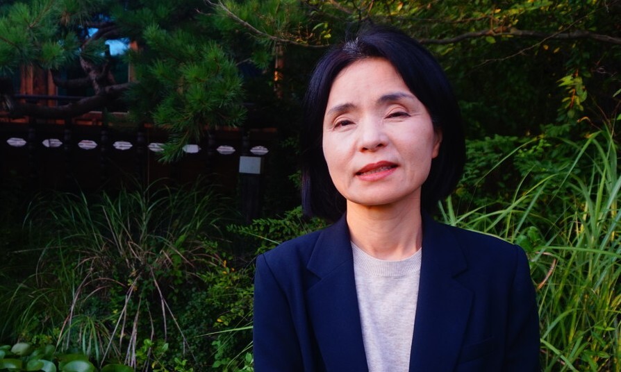 이영아 전 고양신문 대표가 7일 경기도 고양시 한 음식점 앞에서 포즈를 취하고 있다. 이준희 기자 |