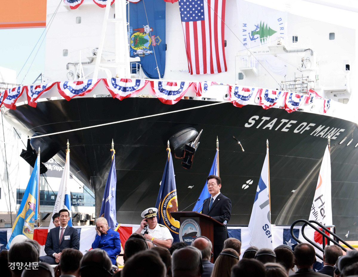 이 대통령은 이날 워싱턴에서 필라델피아로 이동해 필리조선소 현장에서 진행된 선박 명명식에 참석했다. 선박 이름은 ‘스테이트 오브 메인(State of Maine)호’로 미 해양청이 발주한 국가안보 다목적선이다. 명명식은 선박을 건조한 뒤 이름을 지으며 안전 운항을 기원하는 행사다.
