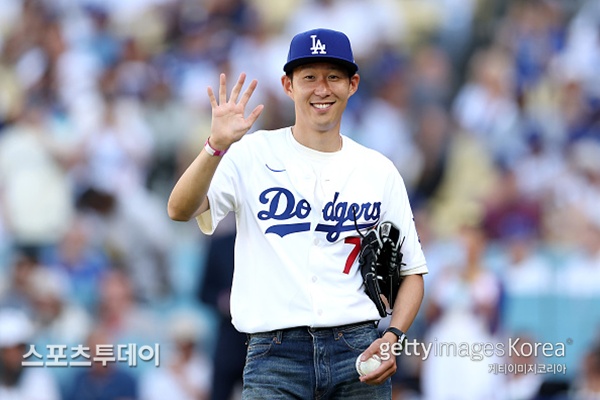 이날 손흥민은 등번호 7번과 'SON'이 새겨진 유니폼과 LA 다저스 모자, 청바지를 입고 등장해 마운드에 올랐다. 손흥민의 손을 떠난 공은 홈플레이트에 앉아 있던 다저스 투수 블레이크 스넬의 글러브에 정확히 안착했다.