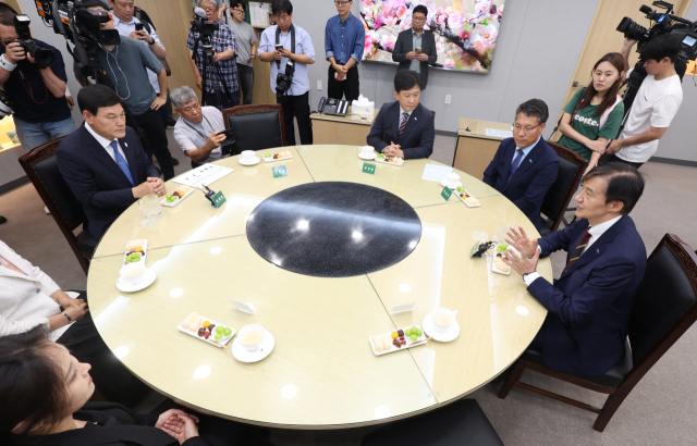 ▲조국 혁신당 조국 혁신정책연구원장이 27일 오전 전남 담양군청에서 정철원 담양군수와 차담을 나누고 있다. 정 군수는 조국 혁신당에서 처음으로 지방자치단체장에 선출됐다. ⓒ연합뉴스 |