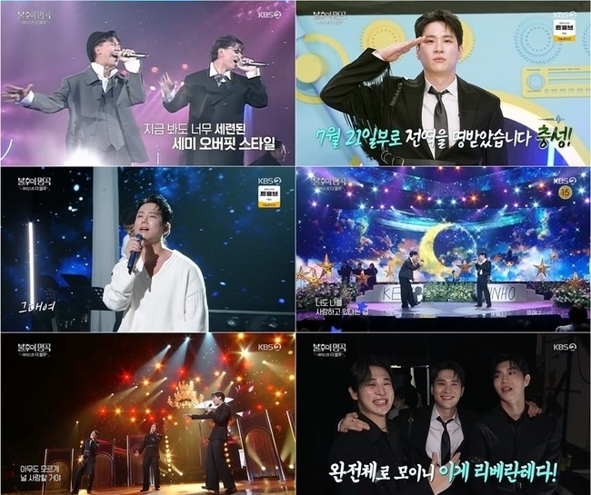 앞서 테이는 김민종의 '착한 사랑'을 밴드 편곡으로 선보이며 섬세한 감정선을 드러냈고, 켄X진호는 손지창의 '사랑하고 있다는 걸'을 이들의 색깔로 재해석해 강렬한 고음 하모니를 선보였다. 두 팀의 대결은 무승부로 이어졌다.