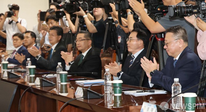 [서울=뉴스핌] 양윤모 기자 = 28일 오후 서울 중구 은행회관에서 이찬진 금융감독원장과 첫 국내 은행장 간담회이 취임 2주 만에 개최됐다. 이 자리에는 조용병 은행연합회장,이환주 KB국민은행장, 정상혁 신한은행장, 이호성 하나은행장, 정진완 우리은행장, 김성태 기업은행장, 강태영 NH농협은행장 등 시중은행과 지방은행,인터넷은행의 은행장이 참석했다. 2025.08.28 yym58@newspim.com |