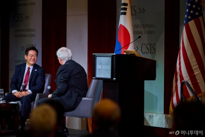 (서울=뉴스1) 이재명 기자 = 이재명 대통령이 25일(현지시간) 미국 워싱턴 DC 국제전략문제연구소(CSIS)에서 정책 연설을 마친 후 존 햄리 CSIS 소장의 질문에 답변하고 있다. (이재명 대통령 SNS. 재판매 및 DB 금지) 2025.8.28/뉴스1 Copyright (C) 뉴스1. All rights reserved. 무단 전재 및 재배포, AI학습 이용 금지. /사진=(서울=뉴스1) 이재명 기자 |