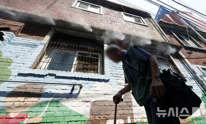 [서울=뉴시스] 홍효식 기자 = 서울 낮 최고기온이 32도까지 오르며 무더운 날씨를 보인 23일 서울 영등포구 쪽방촌 골목에 쿨링포그가 가동되고 있다. 2025.06.23. yesphoto@newsis.com |