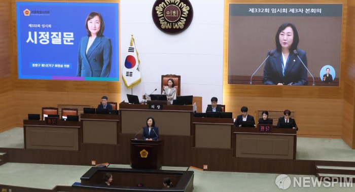 [서울=뉴스핌] 양윤모 기자 = 중랑구 제1선거구 이영실 의원이 29일 서울시의회 본회의장에서 열린 '제332회 임시회 제3차 본회의'에서 한강버스 선박 건조 지연문제에 대해 시정질문을 하고 있다. 2025.08.29 yym58@newspim.com |