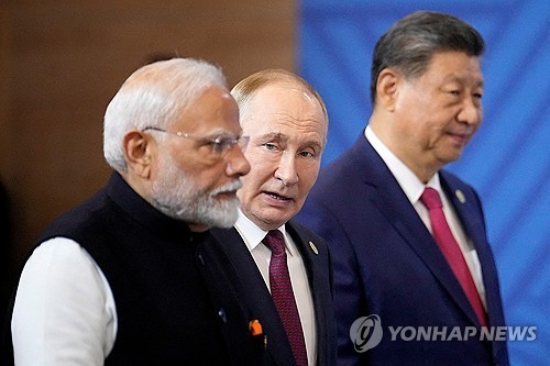 (서울=연합뉴스) 임화섭 기자 = 블라디미르 푸틴 러시아 대통령, 나렌드라 모디 인도 총리, 시진핑 중국 국가주석이 만나 '반(反)트럼프 에너지 삼각협력'을 재확인할 예정이다.