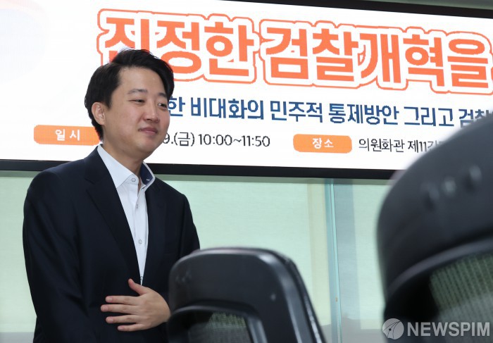 [서울=뉴스핌] 김학선 기자 = 개혁신당 이준석 대표가 29일 서울 여의도 국회 의원회관에서 열린 '진정한 검찰개혁을 찾아서' 세미나에서 축사를 마치고 자리로 향하고 있다. 2025.08.29 yooksa@newspim.com