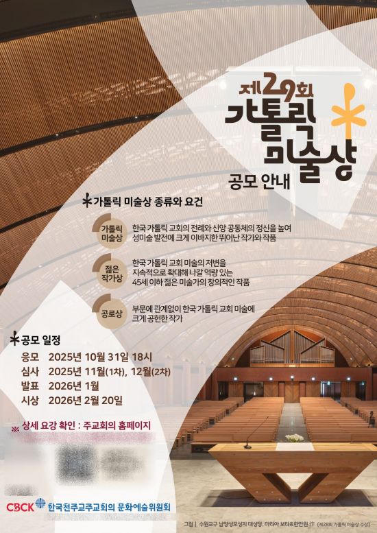 응모는 오는 10월31일까지 온라인 접수하면 된다. 11월과 12월 심사를 거쳐 내년 1월 최종 발표한다. 자세한 내용은 주교회의 홈페이지를 참고하면 된다.