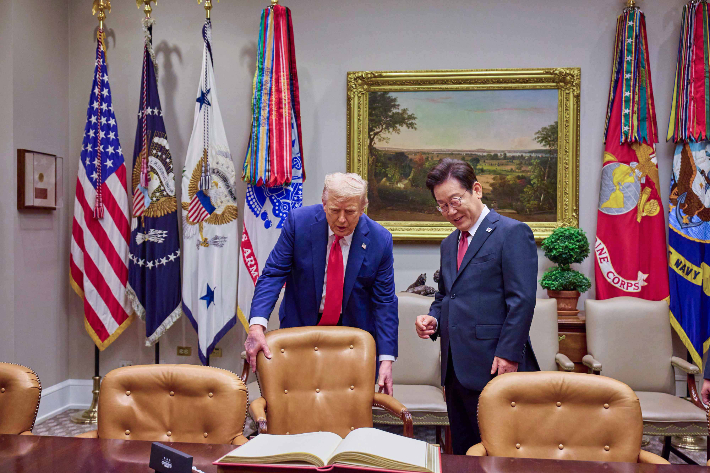 회담 중 이재명 대통령은 방명록 서명을 위해 사용한 펜을 본 트럼프 대통령이 "이게 당신의 펜입니까? 멋지네요"라고 감탄하자, 이 대통령은 "네, 가져온 펜입니다"라고 응답하고, 트럼프 대통령이 "가져가시겠습니까?"라며 농담하자 즉석에서 선물로 전달했다.