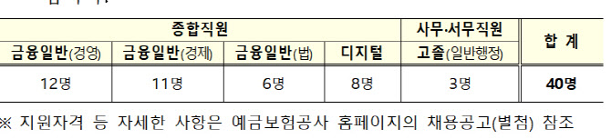 입사지원은 예보 홈페이지를 통해 9월 12일 17시까지 가능하며, 서류전형 합격자에 한해 필기전형 및 1차·2차 면접전형을 거쳐 12월 중 최종 합격자를 발표할 예정이다.