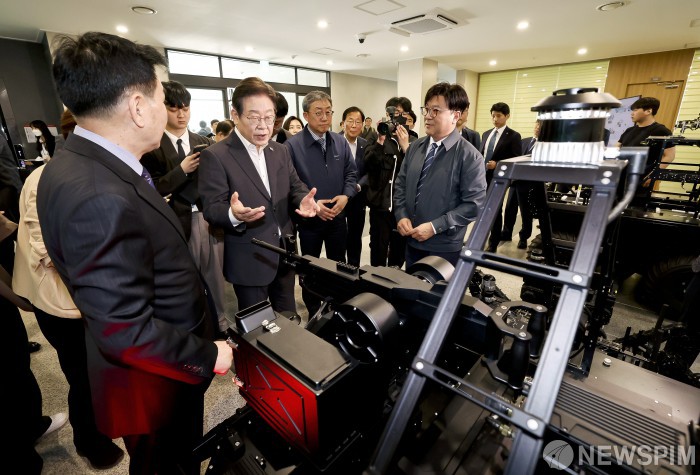 [대전=뉴스핌] 국회사진취재단 = 이재명 더불어민주당 대선 경선 후보가 17일 오전 대전 유성구 국방과학연구소(ADD)를 방문해 AI기반 무인체계 연구개발 현장을 둘러보고 있다. 2025.04.17 photo@newspim.com |