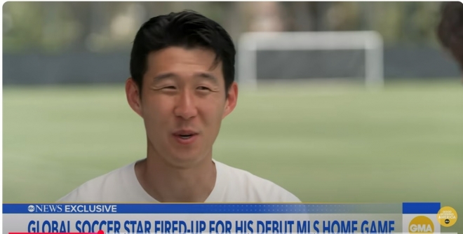 손흥민은 28일(현지시간) 미국 ABC 채널의 인기 아침 TV 프로그램인 ‘굿모닝 아메리카’에 출연해 이같이 밝히고 “미국에서는 축구, 야구 등 다양한 스포츠가 있다”면서 “나는 MLS를 더 크게 만들기 위해 이곳에 합류했다”고 말했다.