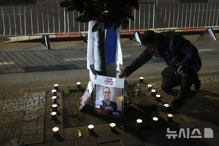 [텔아비브=AP/뉴시스]2월26일 이스라엘 텔아비브의 법의학 연구소 밖에서 한 남성이 하마스가 인도할 이스라엘 인질 4명의 시신 도착과 신원 확인을 기다리며 촛불을 밝히고 있다. 이스라엘군은 29일 군이 인질 2명의 시신을 회수했다고 밝혔다. 이 중 한 구는 가자지구 전쟁을 촉발시킨 2023년 10월7일 공격으로 숨진 이스라엘 남성의 시신이다. 2025.08.29. |