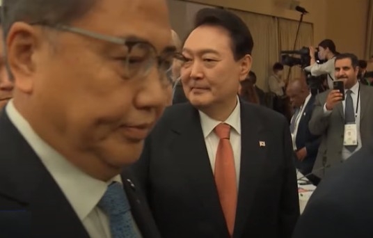 윤석열 대통령이 2022년 9월 미국 뉴욕 한 빌딩에서 열린 글로벌펀드 제7차 재정공약회의를 마친 뒤 나오고 있다. [MBC 보도 갈무리] |