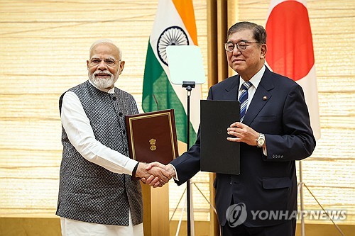 (도쿄=연합뉴스) 박상현 특파원 = 이시바 시게루 일본 총리와 나렌드라 모디 인도 총리가 29일 도쿄 총리 관저에서 회담을 열어 안보·경제 협력을 강화하고 인적 교류를 확대하기로 했다.