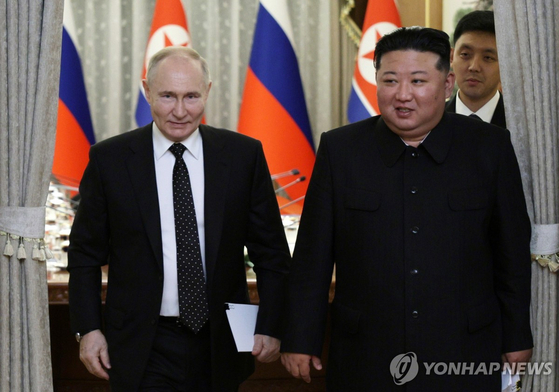 김정은 북한 국무위원장(오른쪽)과 푸틴 러시아 대통령 〈사진=EPA 연합뉴스〉 |