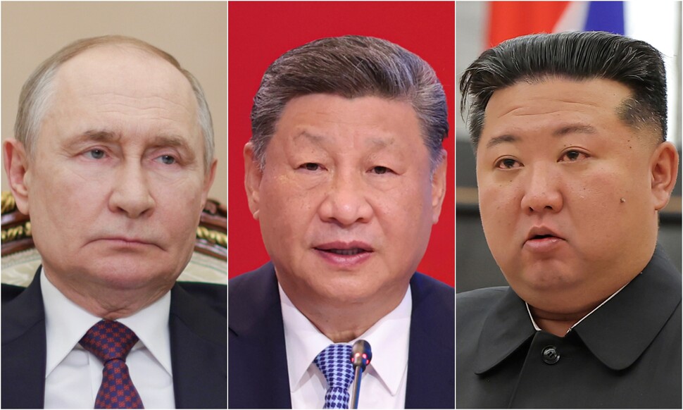 블라디미르 푸틴 러시아 대통령(왼쪽), 시진핑 중국 주석, 김정은 북한 국무위원장. 연합뉴스 |